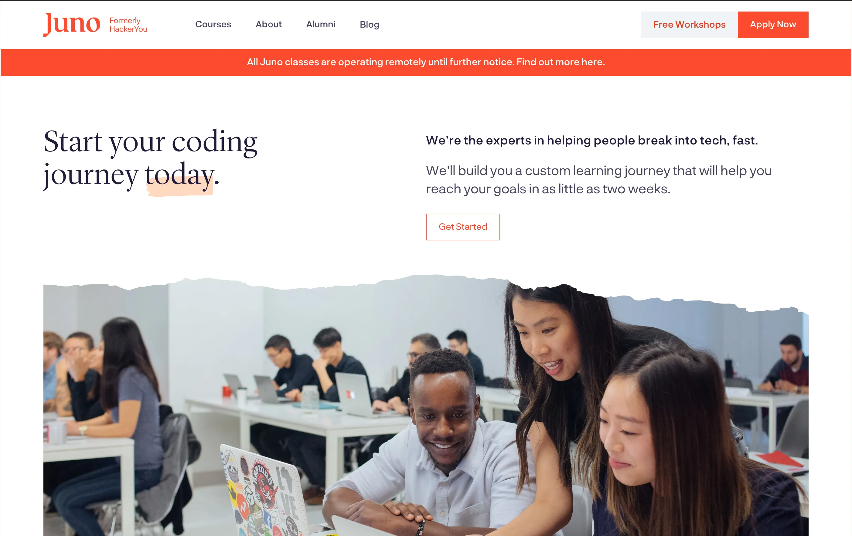 HackerYou was a huge part of the Toronto tech scene: the school was an entry point to a new career, the center of a thriving and supportive community, and it meant a lot to the hundreds of students who attended – myself included! When they announced that they were rebranding to Juno College of Technology and growing, that was exciting news. And when they asked if I would join their team to help build out an all-new site to support this new identity, I jumped at the opportunity.
